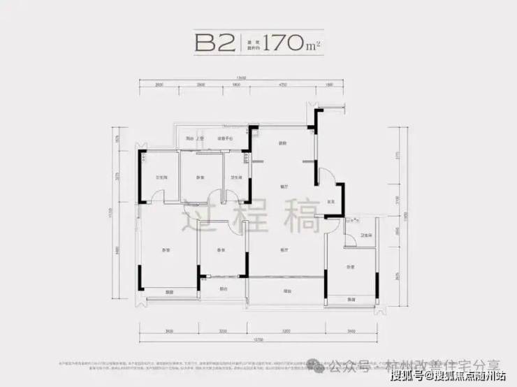 建面约170方B2户型,四房两厅三卫