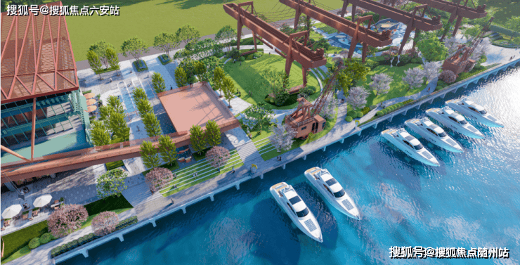 这是湾流800的天赋所在。其所处的运河湾,是运河之源,也是港湾所在。湾区江水静流,风吹起皱。三艘漕运木船一字并停,岸上工业遗存的龙门吊(规划)下,运河游艇码头正在加速建设。