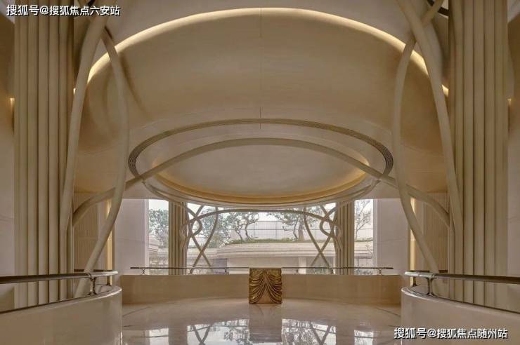 在外立面上,将“站立的江潮” 凝为建筑魂魄,挣脱传统对称的枷锁,以层叠曲面与横向线条模拟潮水翻涌的瞬息万变,再以向上飞扬的曲面飘板,为建筑注入更多的动感和张力。