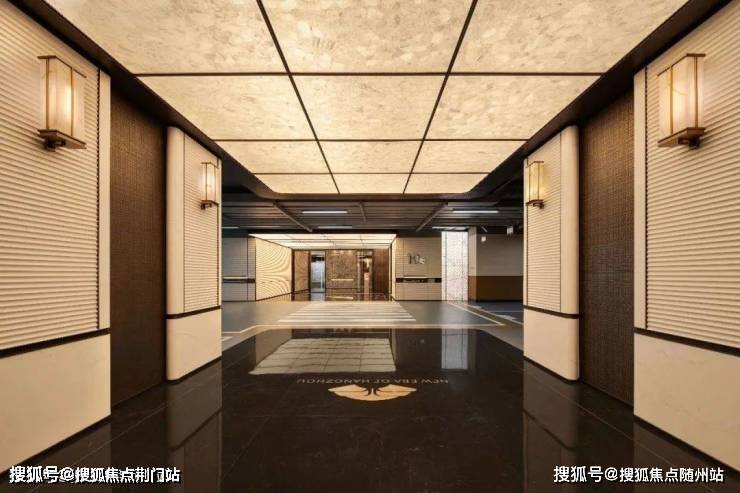 厅堂内大型水景艺术灯高悬于顶,以天为幕、气场大开,照映大理石地面,通体气派,传神东方宅邸的风骨。