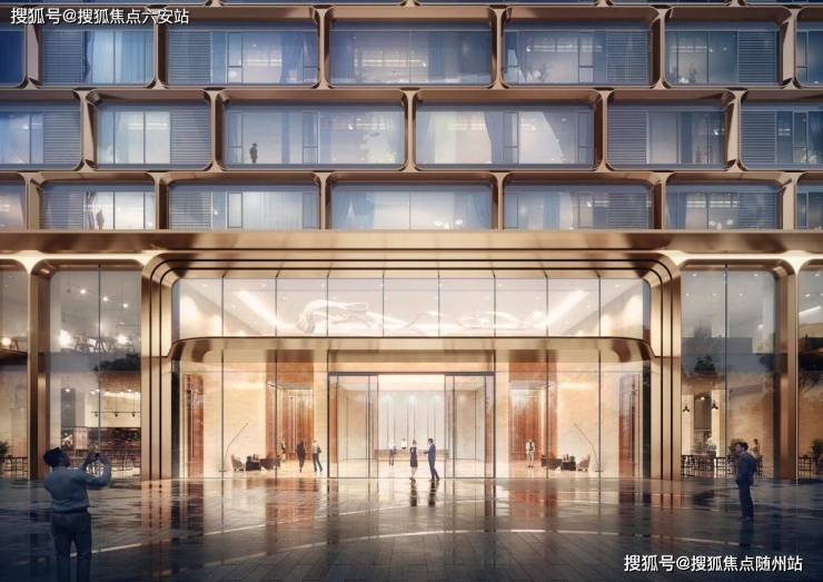 外立面:金色铝板+玻璃幕墙,流动的光影艺术