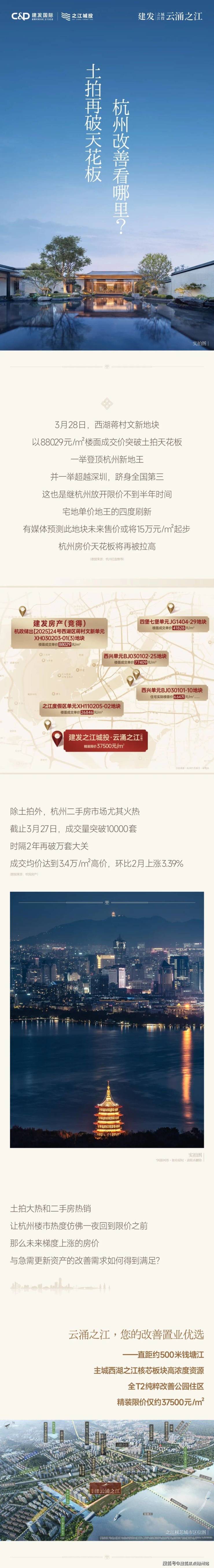 建发云涌之江:500米钱塘江边|最后几席一口价江景住宅|咫尺学军+银泰|钱江岸126-139㎡新中式住宅!