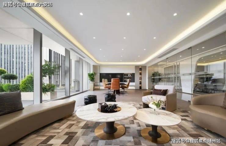 引水景入商办场域,柔化环境节奏,结合户外休闲场域,助力员工放松身心,激发创意灵感。奢华大堂作为企业门面,以高档建材和智能接轨标准,提升品牌形象。内部奢装标准覆盖公共区域与独立办公室,确保整体美学统一。