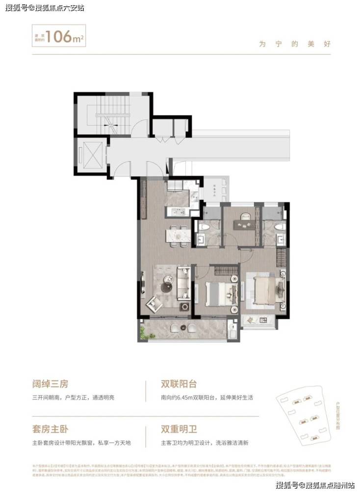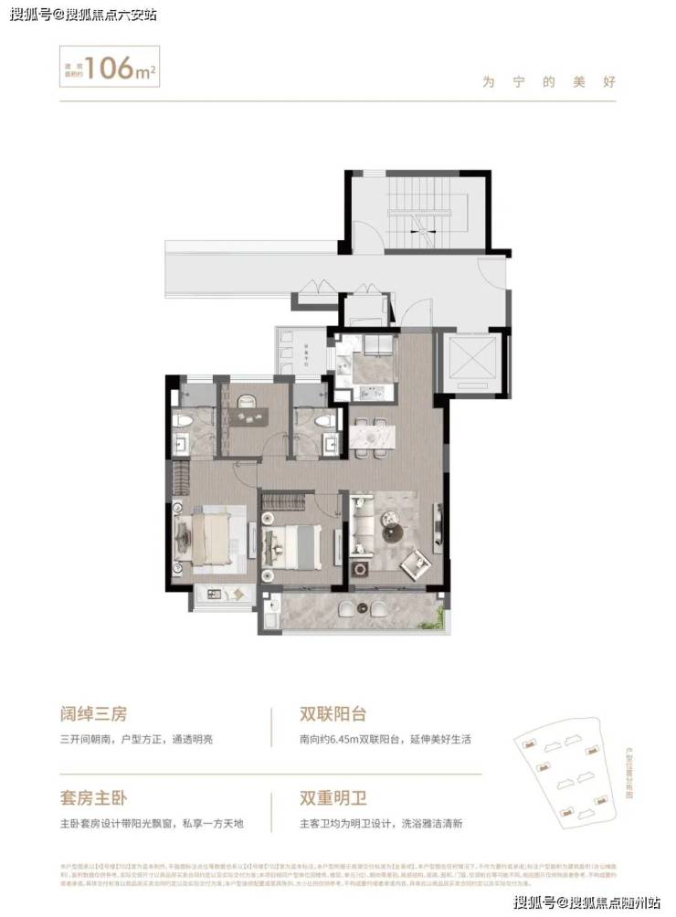 主力户型为建面约96-130㎡三房,采用动静分区设计,部分户型赠送率达25%。2026年三季度精装交付,即买即住,规避期房风险。全屋配备日立中央空调、兰舍新风系统,提升居住舒适度。