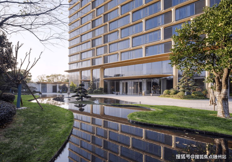 由line+建筑事务所孟凡浩(亚洲建筑师协会金奖得主)主持设计,提取钱塘江“潮涌”动态元素,以金色铝板曲面线条与大尺度玻璃幕墙结合,形成流动韵律。外立面经十余次实体挂样测试,确保不同光线下的视觉效果。