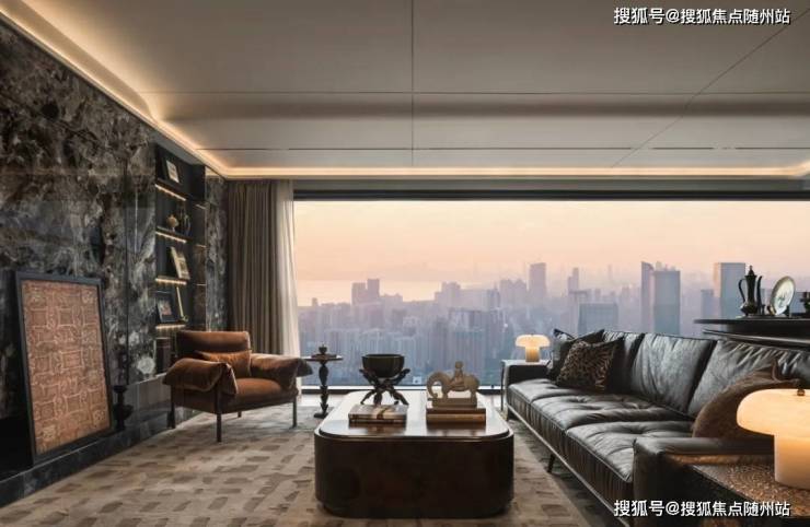 一个能让你收获愉悦的空间内,☎【售楼热线】:400 816 3856 ☎⫷结构化区块以和谐的边界进行区分,光线透过超大尺度落地窗洒进屋内,自在流走。复古和谐的家具配色,皮质和金属材质的使用,中古风艺术品的选择让整体空间显得现代且极具艺术质感。