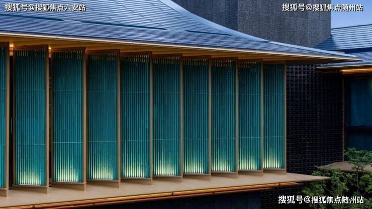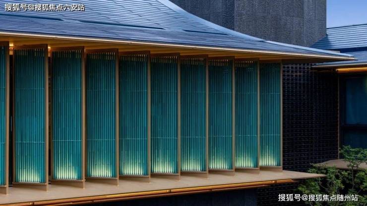 在立面打造上,提取宋代歇山顶样式,转译形成深远的挑檐,整体呈现一种清雅内敛的当代气质;大尺度巨幕玻璃窗镶嵌金色铝线条,极简化打造光影天幕,倒映自然之境;臻选靛蓝色的陶瓦,原创蓝金坡屋顶,掀起杭州合院立面的新序章。