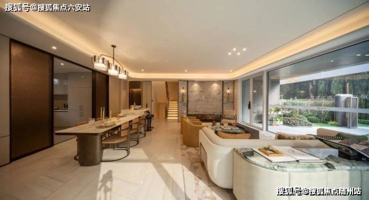 自门庭步入大堂,高门阔厅别有洞天。迎面近9米通高的落地玻璃窗外,奢石飞瀑与松涧迎门;厅堂内大型水景艺术灯高悬于顶,以天为幕、气场大开,照映大理石地面,通体气派。这里,传神东方宅邸的风骨,更诉说着关于家的高阶想象。