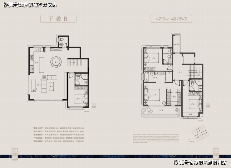 建面约210-280㎡纯4层叠墅,通过上叠北庭下叠南院,独立归家动线、约6m层高地下空间与全套房设计等,推动叠墅空间进化。精装上,嘉格纳、博世等百年品牌加持,尽显极简优雅。