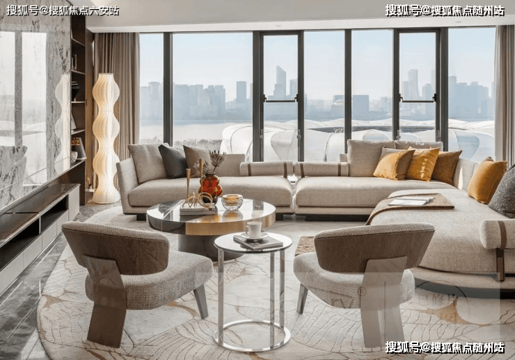 主力户型为230-380㎡精装现房大平层,层高3.15-3.3米(部分户型),采用270°环幕江景设计,部分高层户型可俯瞰奥体中心“莲花碗”、钱塘江及钱江新城“日月同辉”双塔,实现城市地标与江景同框。