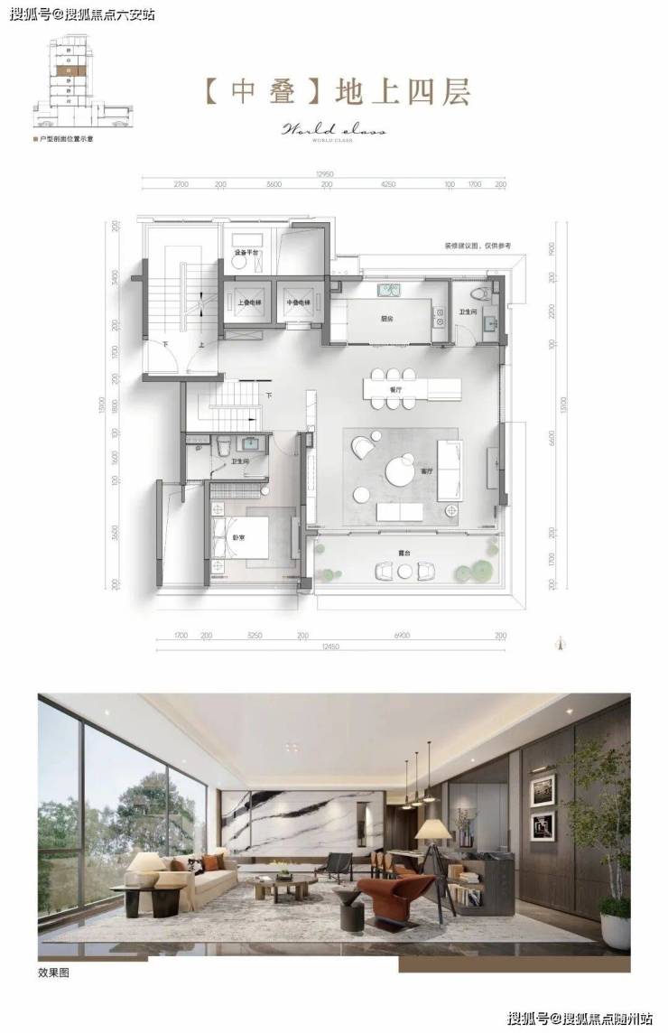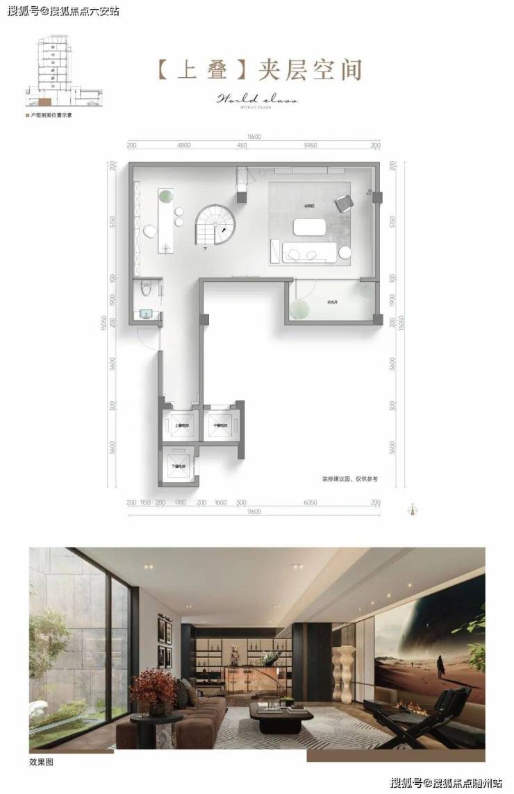 中叠与下叠地上部分为五房五卫格局,边套主卧面宽达11.6米,餐客厅面积超60㎡,媲美大平层体验。