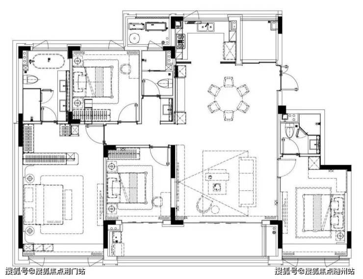 95%超高得房率:四房三卫双套房,南向双联阳台长达9.2米;