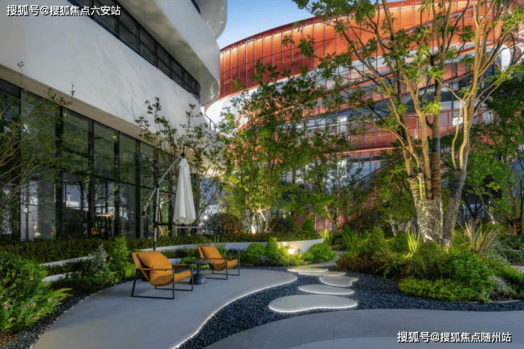 园区绿化率35%,结合垂直绿化系统整体覆盖率超40%,打造2.5万㎡中央园林与“屋顶花园+梯田V谷”五重景观。270°环形采光设计、LOW-E玻璃幕墙隔音降噪,实现“工作在园林中”的生态体验。