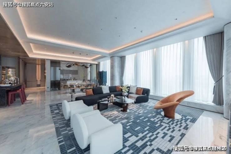 主力户型410-420㎡,以4.2米层高(装修后净高约3.5米)刷新杭州大平层标准。设计采用270°超60米三面采光,搭配全景落地窗,将钱塘江景与奥体天际线纳入室内。