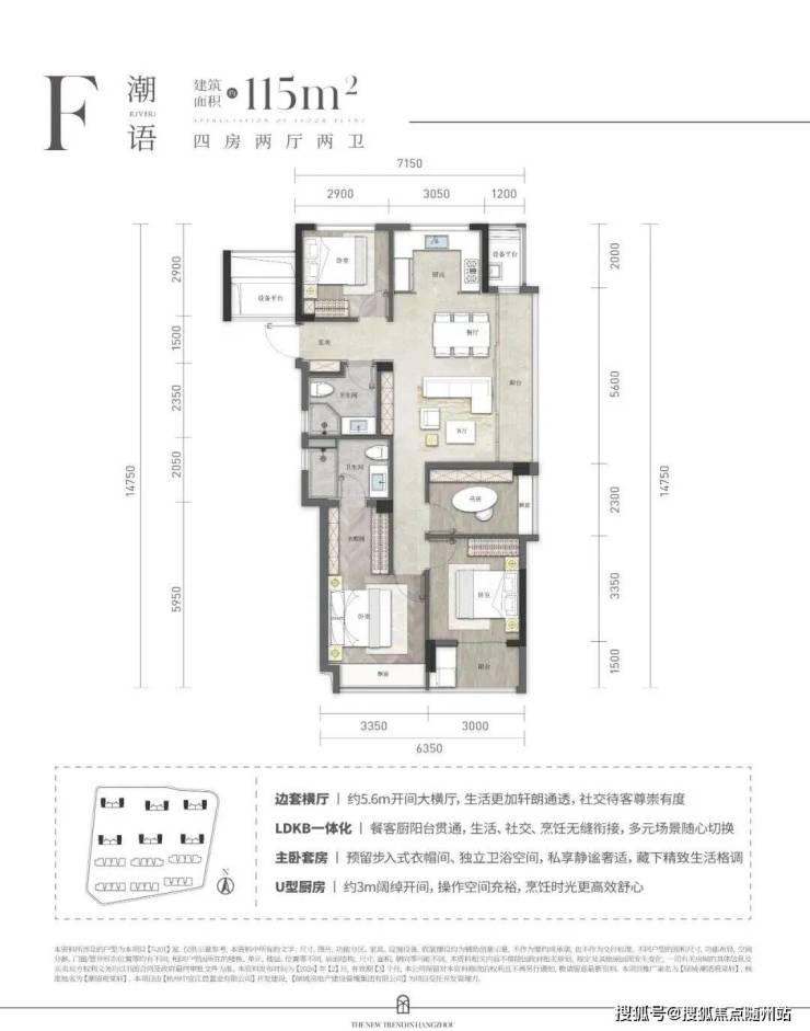 约14.35米的南向大开间,实现了三卧室朝南的奢阔布局;主卧套房更采用了L型采光面,阳光非常充足。