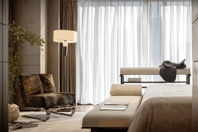 总统式主卧套房空间面积高达约52㎡,☎【售楼热线】:400 816 3856 ☎⫷配备全景步入式衣帽室+收纳空间+酒店式三分离卫生间,搭配联合国际大师的高定专属生活方案,相当于把安缦酒店的行政套房搬到家里。