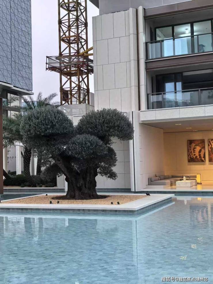 入口处显眼的“矮大紧”树种,听销售介绍是有上千年树龄的油橄榄,我向景观专业的朋友打听了下,这类树种单棵造价起码有250万,还需额外投入2吨专用种植土。