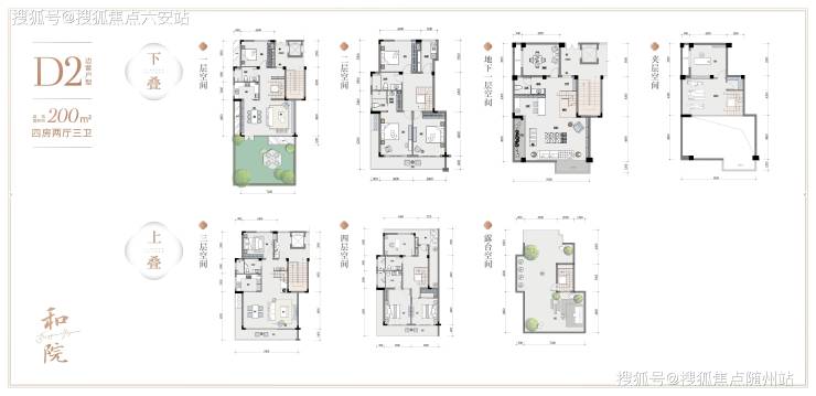 项目以1.02超低容积率打造纯墅社区,规划14栋现代叠墅与43栋新中式合院,地上三层/三层半设计,含私属花园、星空露台及5.5米挑高地下室,实际使用面积最高达800㎡(建面175-430㎡),得房率超180%。
