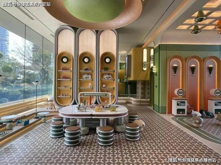 6号楼则是把整个架空层打造成2个主题童玩空间。一边以游玩设施为主,包括滑梯、玩具等,适合小朋友玩耍;