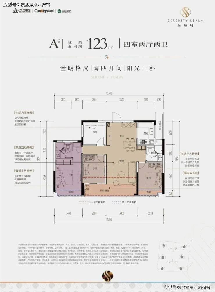 建面约123-173㎡的主力户型。该项目在户型打造上也有诸多突破,如建筑面积约139㎡户型采用约6.8米全景横厅,采光极佳;约21㎡主卧带步入式衣帽间,搭配270°转角飘窗,更奢华明亮;双洄游动线体系既保证隐私又创造多元互动场景。