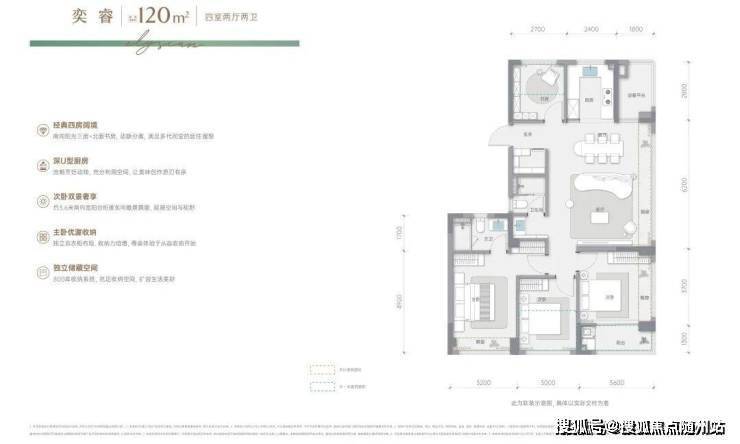• 类方厅阔境:客厅餐厅厨房一体化设计,营造开阔通透的空间感,提升居住舒适度