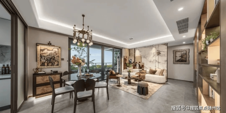 随处可见的仿大理石肌理的岩板,散发出温润而典雅的气质,妥妥的板块高品质楼盘。