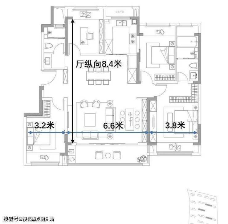 这个户型很棒,面积放大之后,各空间的尺度也上去了,