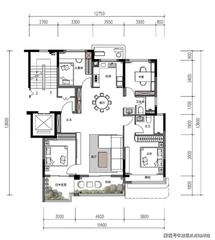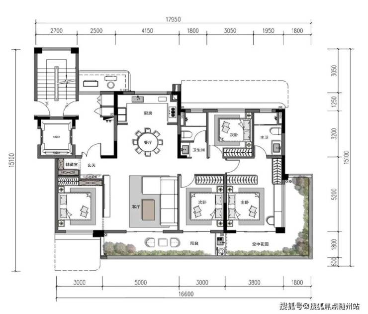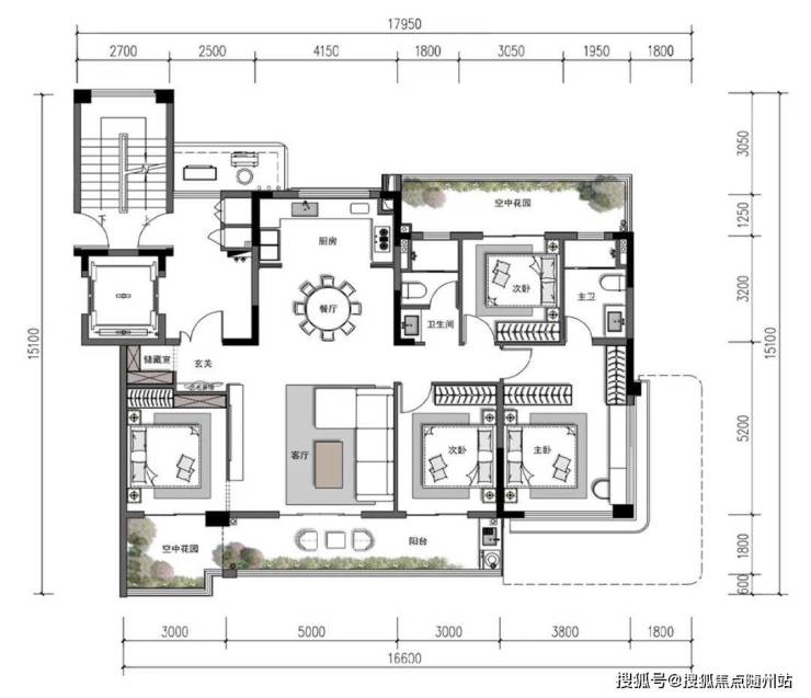 主卧套房+空中花园:推窗即见双层挑高空中花园,晨起观花、夜晚赏月,私享诗意。