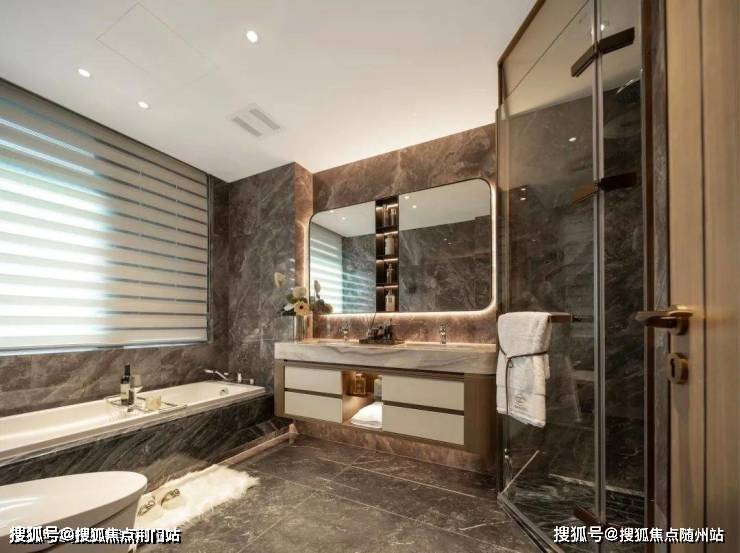 堪比星级酒店总统套房的主卧,带独立卫浴间,配上双台盆+大浴缸,以及走入式衣帽间,既是太太的更衣室,也是先生的名表收纳室。