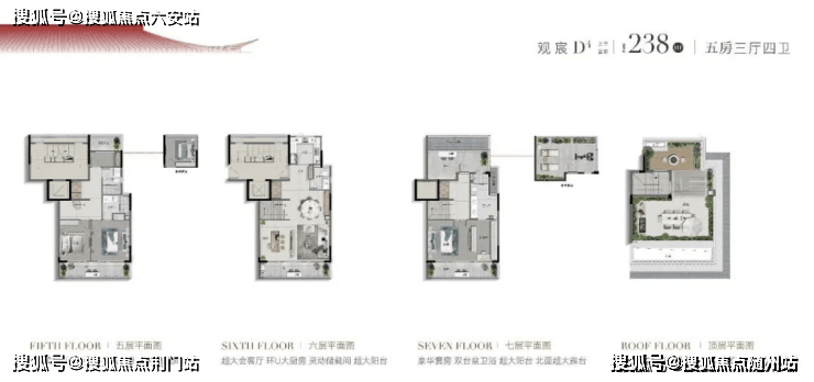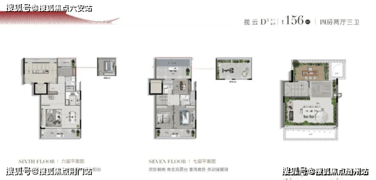 上叠(建面约156-177㎡):屋顶露台+全景窗,尽揽天际线