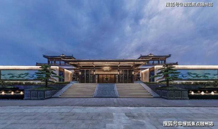- **纯正宋韵,形制尊贵**:以《千里江山图》《四景山水图》为灵感,复刻宋代建筑精髓。外立面采用伊朗进口“蓝眼睛”石材与香槟金铝板,歇山顶门头、戗角飞檐、青石地雕等细节,展现“天地人”和谐共生的东方哲学。