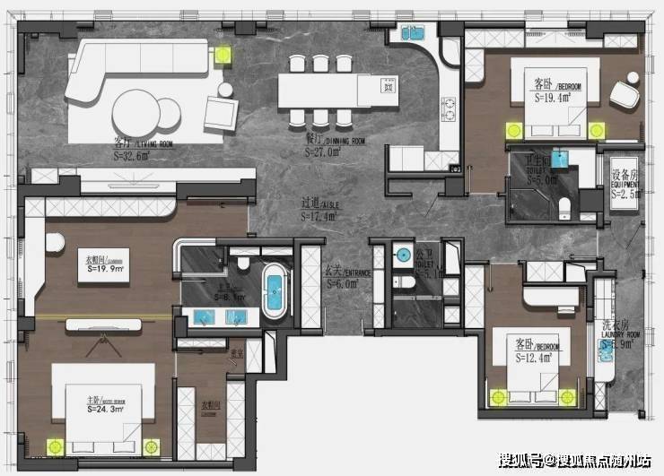 · 建面约240㎡:南北通透双主卧套房设计,配备独立家政间与中西双厨;