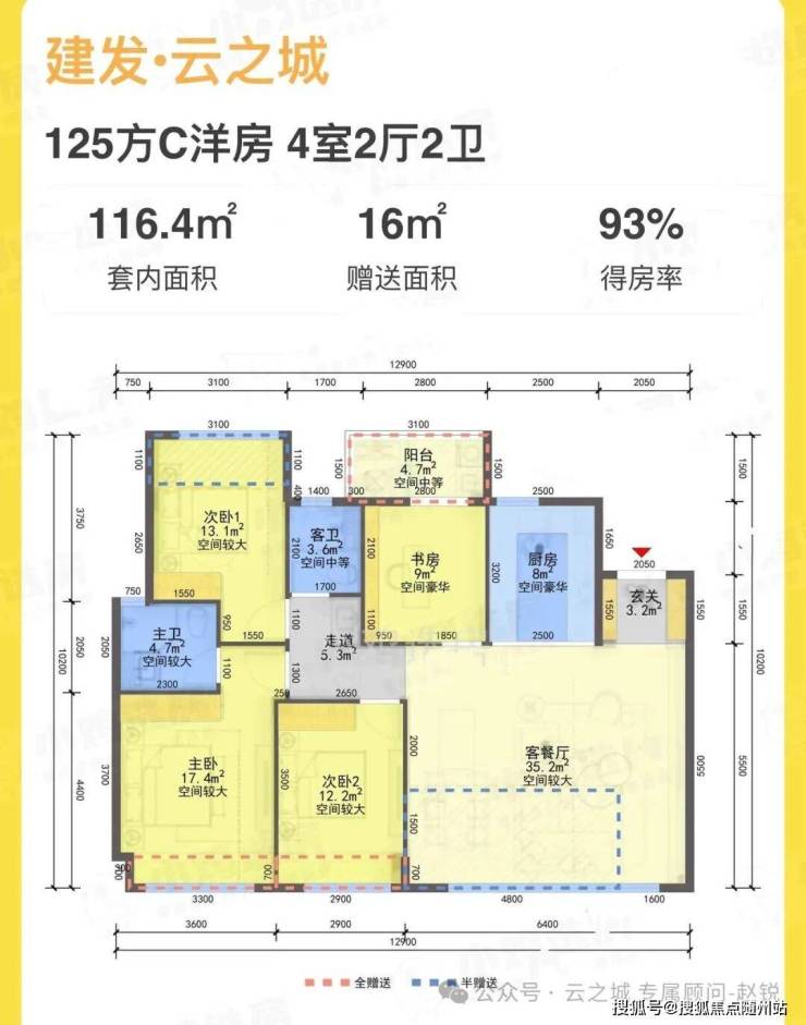 整体容积率约1.01-1.3,规划南北两大住区:北区4幢10层洋房、12幢4-6层的叠拼(约188㎡叠墅)南区24栋8-11层洋房(建面约91-165㎡洋房)云之城做了封闭阳台,得房率最高能达到96%。全T2分布户型,放眼整个市场,这样的得房率绝对是名列前茅。建面约91方真三房户型,真南北通透洋房产品北侧无消防连廊设计,小面积也是真南北通透,区别市面2+ 1户型,最小的卧室也有将近9个平方,每个卧室面宽均达到3米及以上