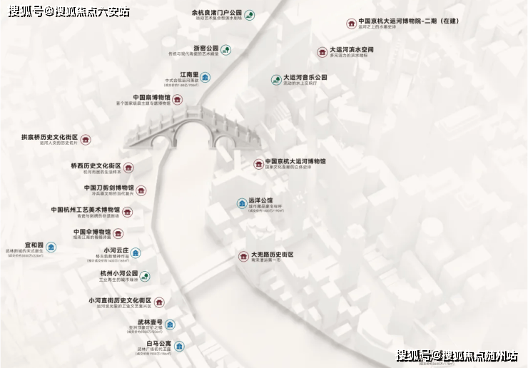 意境之源——模拟“宋韵十大雅集”定制十大水岸生活场景,古今生活形成时代对话;文化之源——融入杭州传统文化于定制铺装、宅印符号等细节处,让运河文化实现生活美学转译的跃迁;
