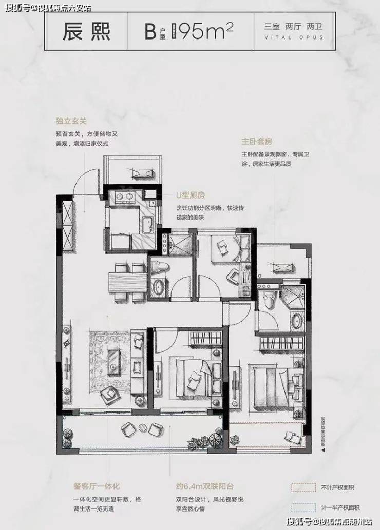 约6.4米的双联阳台,能为全家生活实现更多美好想象。