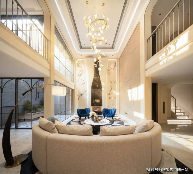 望云庭的立面,采用了豪宅御用的四面铝板,整体造型以钱塘江自然曲线为设计母题,外立面通过香槟金和深灰双色铝板幕墙,配以铂金钻、黑金沙等石材与玻璃弧角工艺,构建出富有张力的几何美学界面。