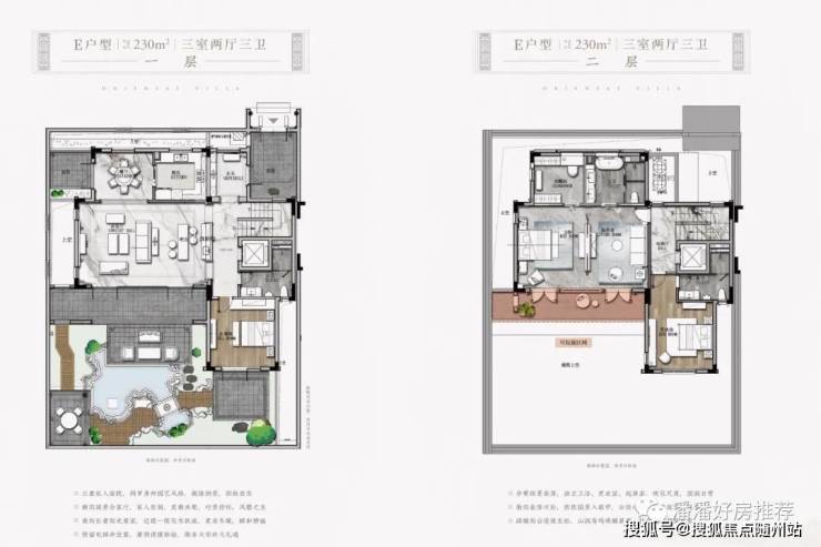 • 联合GOA大象设计公司(原绿城东方设计院的凌建先生的团队),通过降低建筑密度和容积率(容积率为0.614,建筑密度30%,以中式建筑中的江南民居形态创作出特有的两层合院产品)。