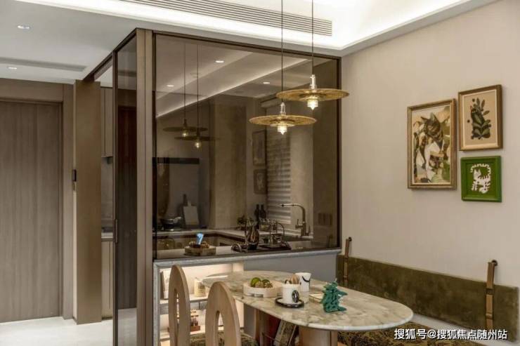 建面约95㎡的户型,阳台客厅一体贯通。 冰箱通过“S墙”外置,实现了完整的U型厨房操作台面 ;同时,厨房与餐客厅之间巧妙配置了隔断式玻璃墙,打破空间的视觉边界,一抬眼就看得到客厅,让家人们得以共享欢乐烹饪时光。