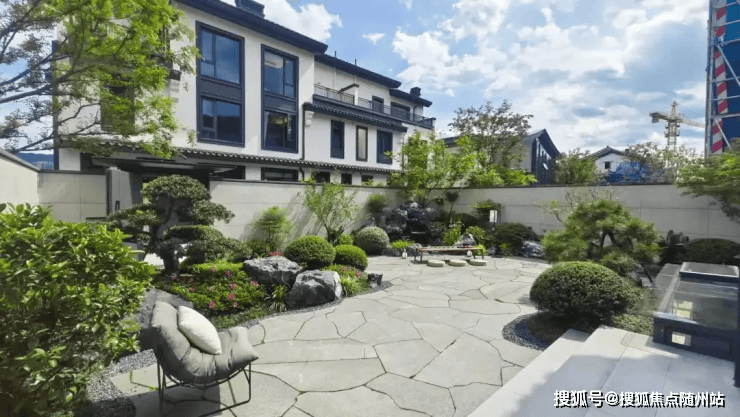 乔木与灌木参差相映,花卉同绿植精巧成趣,高低错落,生机流转。排屋依地势层叠而上,格局井然,门第尊荣,不彰自显。