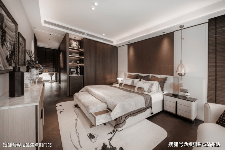 而真正的主卧,净面宽更是达到豪横的约3.5米。这和奥体2000万级、同面积段的住宅大平层的主卧尺度,其实不相上下。