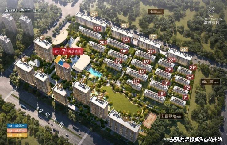 墅区小高层建筑面积约105-130㎡,为最大化景观面,突破性设计建筑面积约105㎡南向四开间。