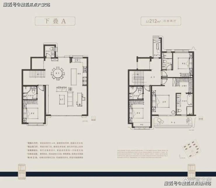 建面约210-280㎡纯4层叠墅,通过上叠北庭下叠南院,独立归家动线、约6m层高地下空间与全套房设计等,推动叠墅空间进化。精装上,嘉格纳、博世等百年品牌加持,尽显极简优雅。