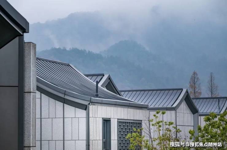 建筑在尽可能范围内,江南院落的坡屋顶、白墙灰瓦、山水景墙等中式风骨,放眼望去,见阳光洒下、韵律辉映,将周围青山绿水映衬出更浓郁的自然之色,绿与白,深浅相照,自然与建筑,完美交融。
