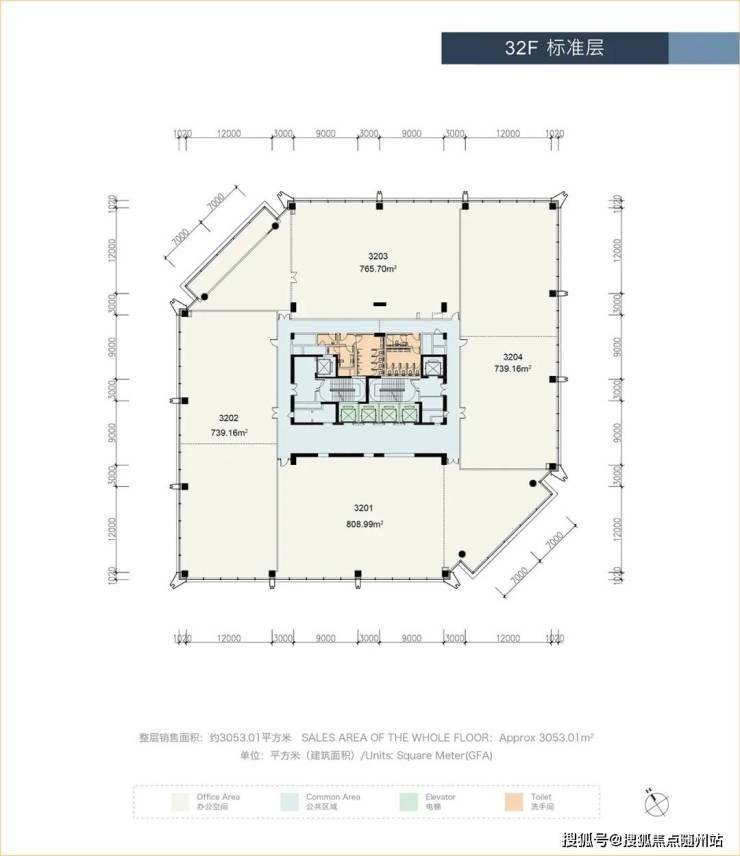 普通超甲级写字楼大堂挑高也就10米,而EIC奢侈地达到了约18米。8部迅达电梯,速度达到7米/秒,远超普通的3-4米/秒,轿厢高度3.6米也远超普通2.7米标准。公区设计时尚,标准极高,橙色波浪纹木饰面通铺到顶,简洁明亮。