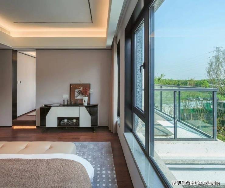 主卧套房设计,南向揽景飘窗拥有更多可拓空间,不仅延伸了主人的寝居尺度,更赋予丰富的场景体验感:枕山看湖听雨,在夏日午后补一觉好眠,好不惬意。