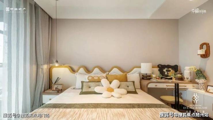全屋约14.6米大面宽的尺度,让三个卧室都能够直面南向采光,实现阳光平权。主卧是豪华套房,除了飘窗、独卫外,由于空间够大,不论是衣帽间的梳妆打扮,临时办公等,也都能在主卧空间内实现。