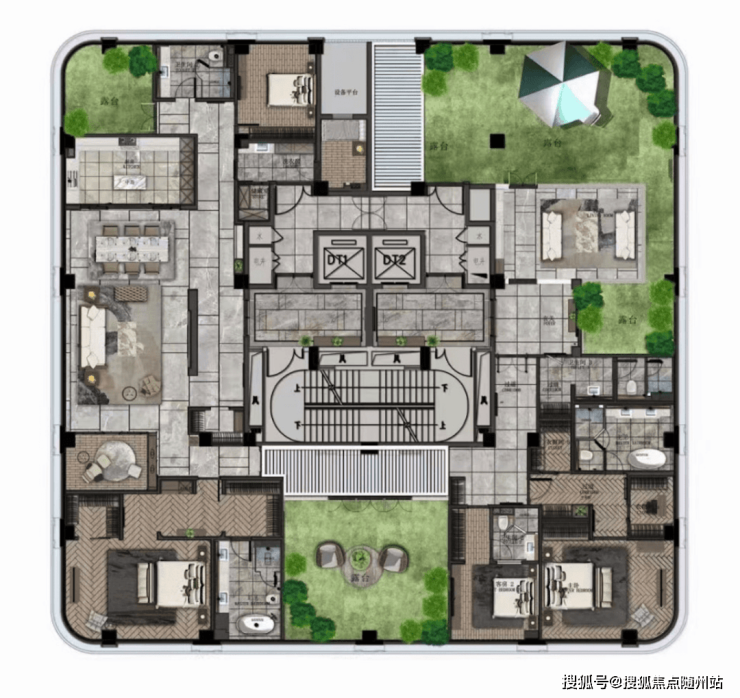 建面约347㎡四叶草户型: