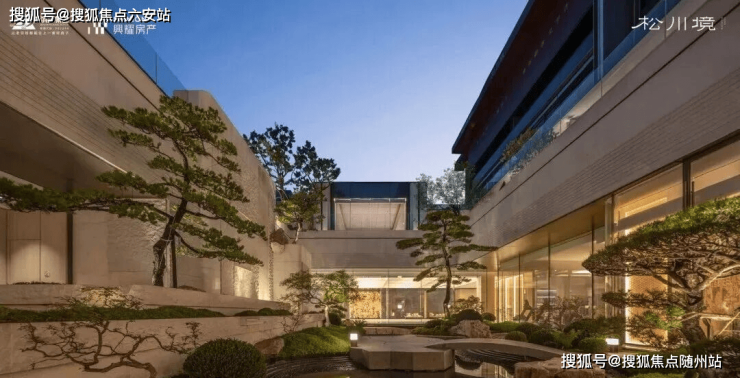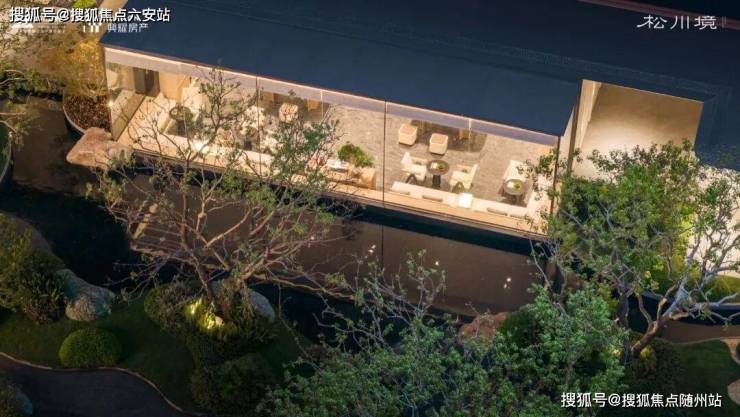 会所庭院以建筑为框,引泉植松,奢造约7米高溪山流瀑,特选6棵造型黑松。将二维的《溪山行旅图》转译为一幅“幽深与静谧、壮丽与宁静”的立体山水画卷。