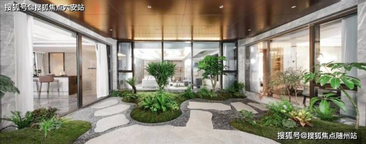 绿化率25%的“三庭四院”园林以《春江花月夜》为灵感,打造筑庭、林庭、石庭等七大主题景观,形成“出则繁华、入则自然”的过渡。