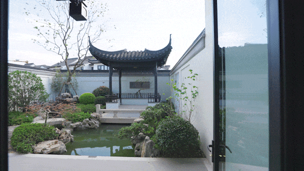 粉墙黛瓦、飞檐戗角、亭台楼榭,这些典型的江南建筑元素,背后是世界非物质文化遗产——香山帮的匠人参与制作,步入其间,澹然如置身水墨画中。